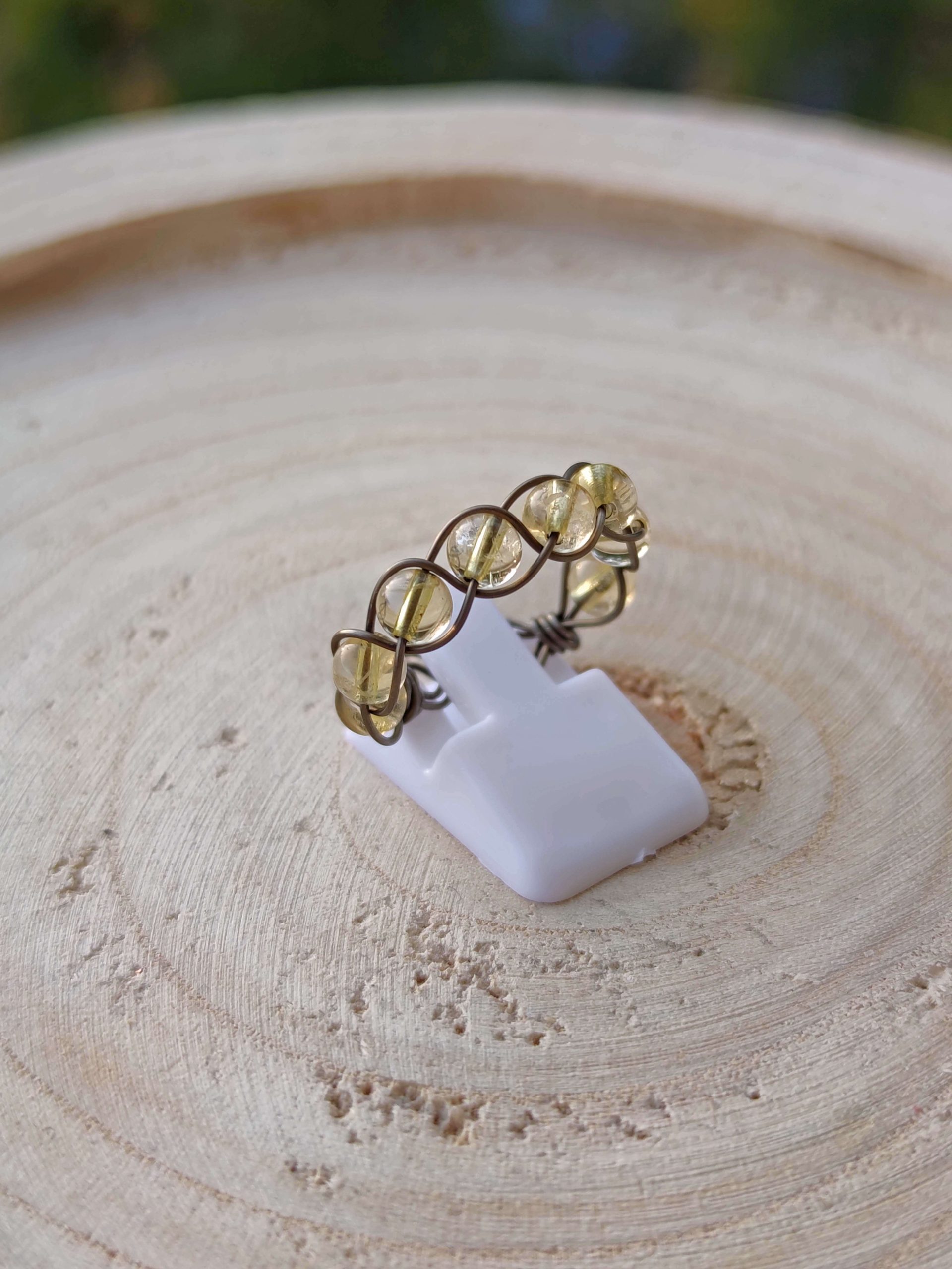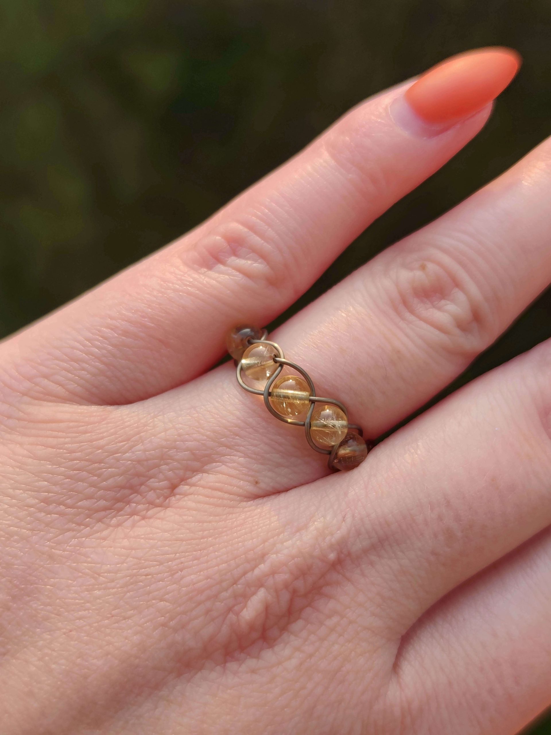 A gyűrű állítható méretű, így bármekkora ujjméretre megfelelő. Az allergén mentes nemesacél alapra Citrin ásványgyöngy került.