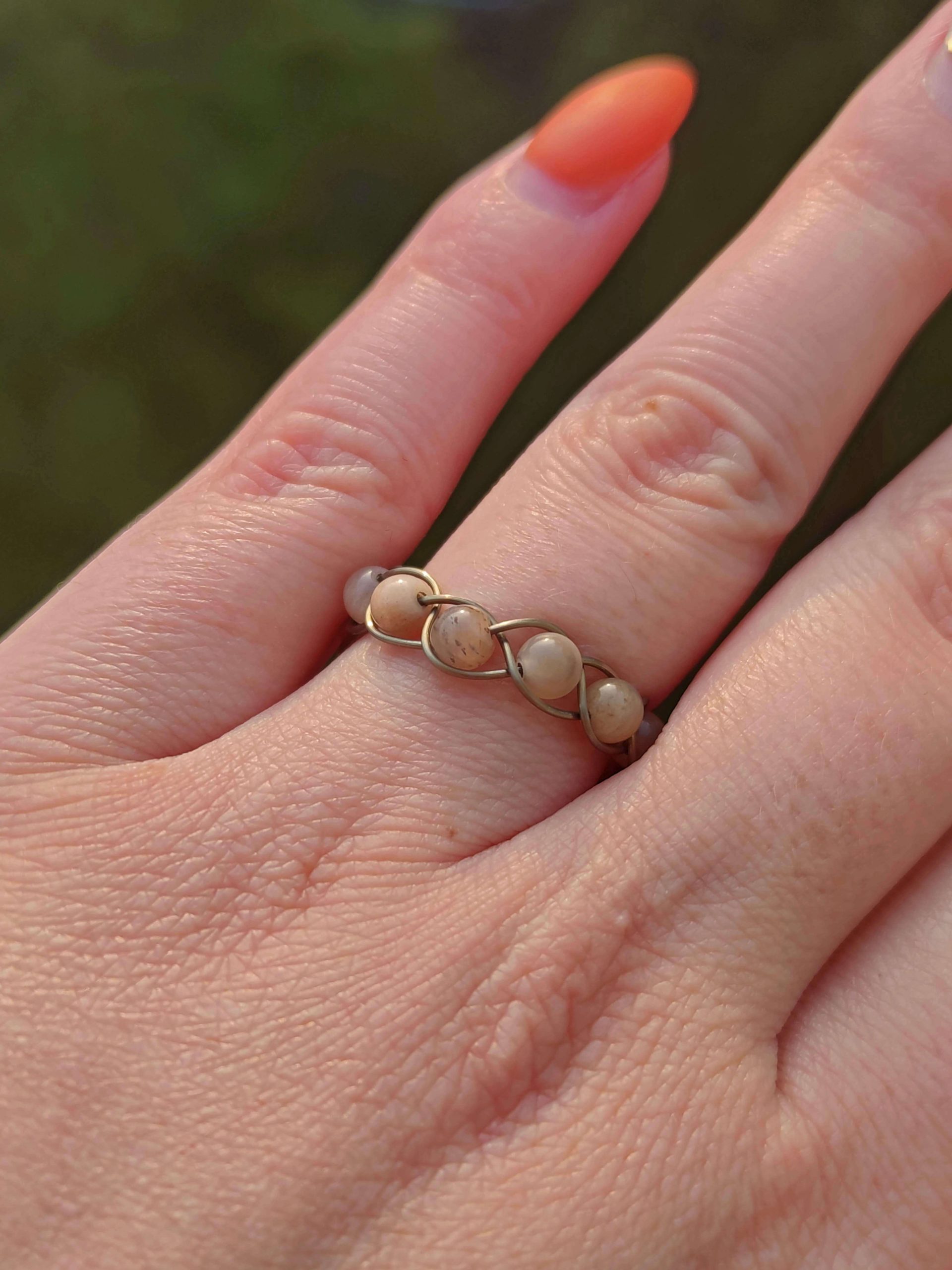 A gyűrű állítható méretű, így bármekkora ujjméretre megfelelő. Az allergén mentes nemesacél alapra holdkő ásványgyöngy került.