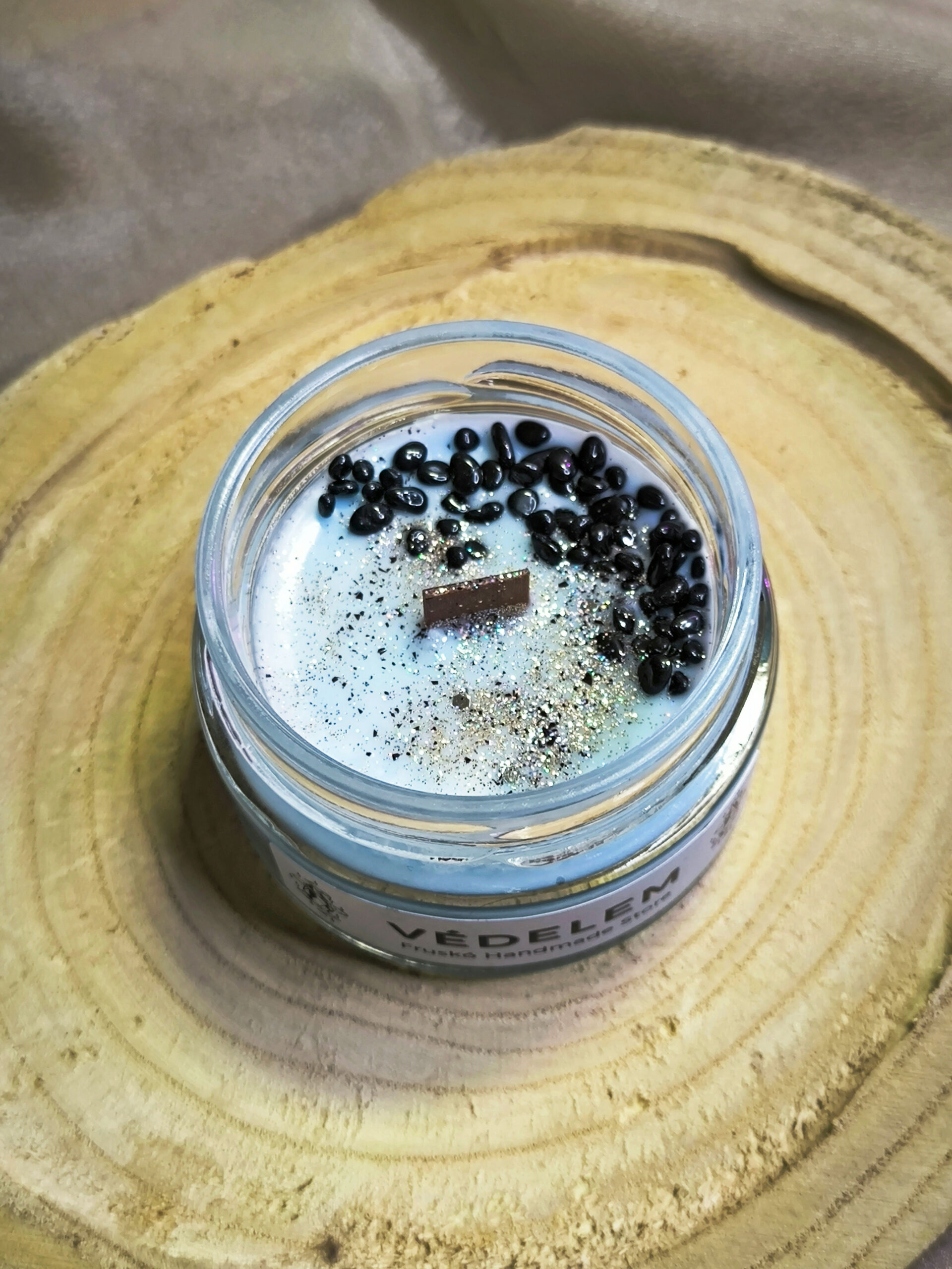 Kiváló minőségű anyagokból készül, amelyek biztosítják a hosszantartó égést és a tiszta lángot. Ezenkívül a szójaviasz természetbarát és egészséges alternatívát kínál a hagyományos paraffin gyertyákhoz képest. Nemcsak különleges látványt nyújt, hanem kellemes illatával és a fekete turmalin ásvánnyal együtt erős védelmet is nyújt a mindennapok során.